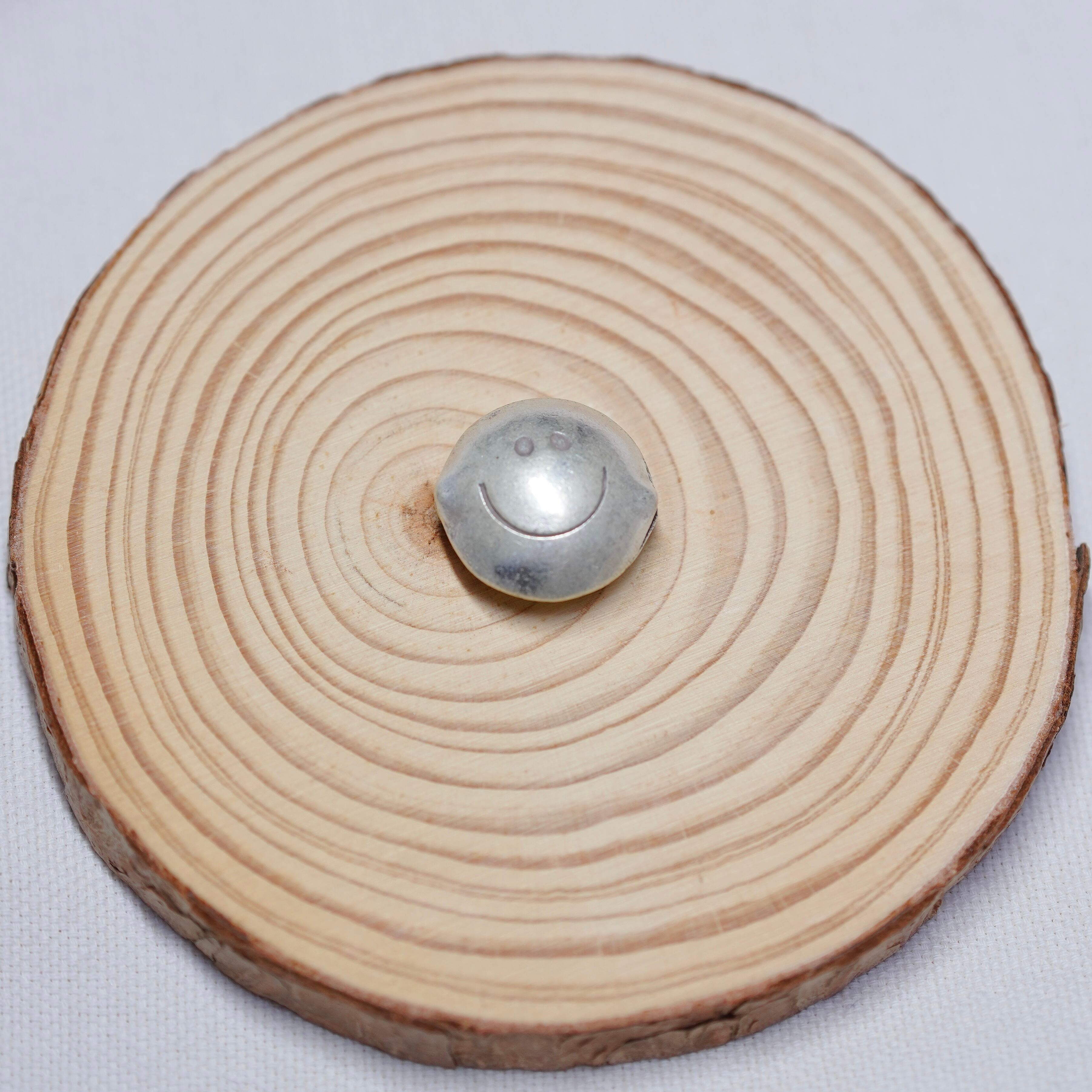 にこちゃんのチャーム。便利な通し穴付きで、チェーンに他のパーツと自由に組み合わができます。大きさ・形に多少のばらつきがありますのでご了承お願い致します。