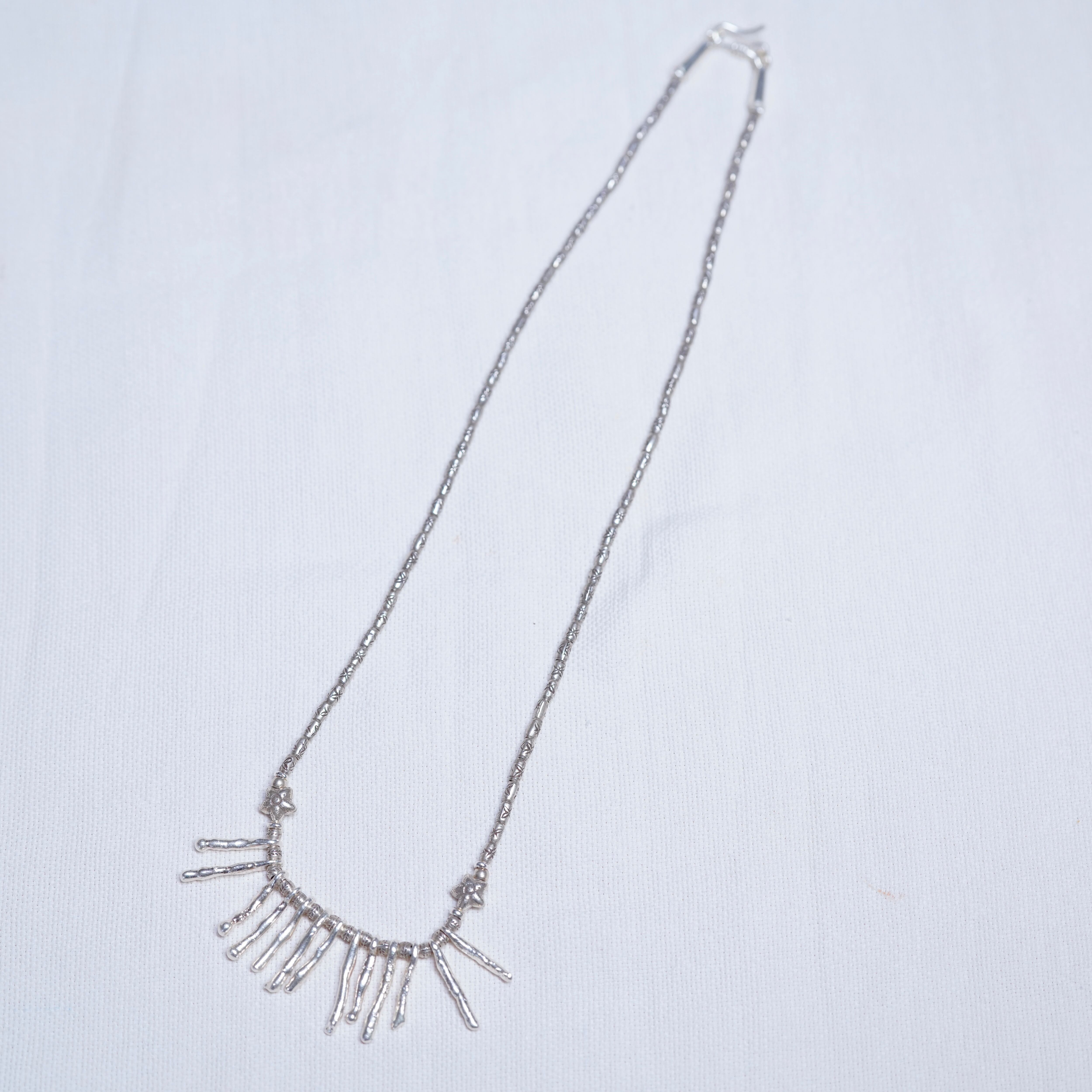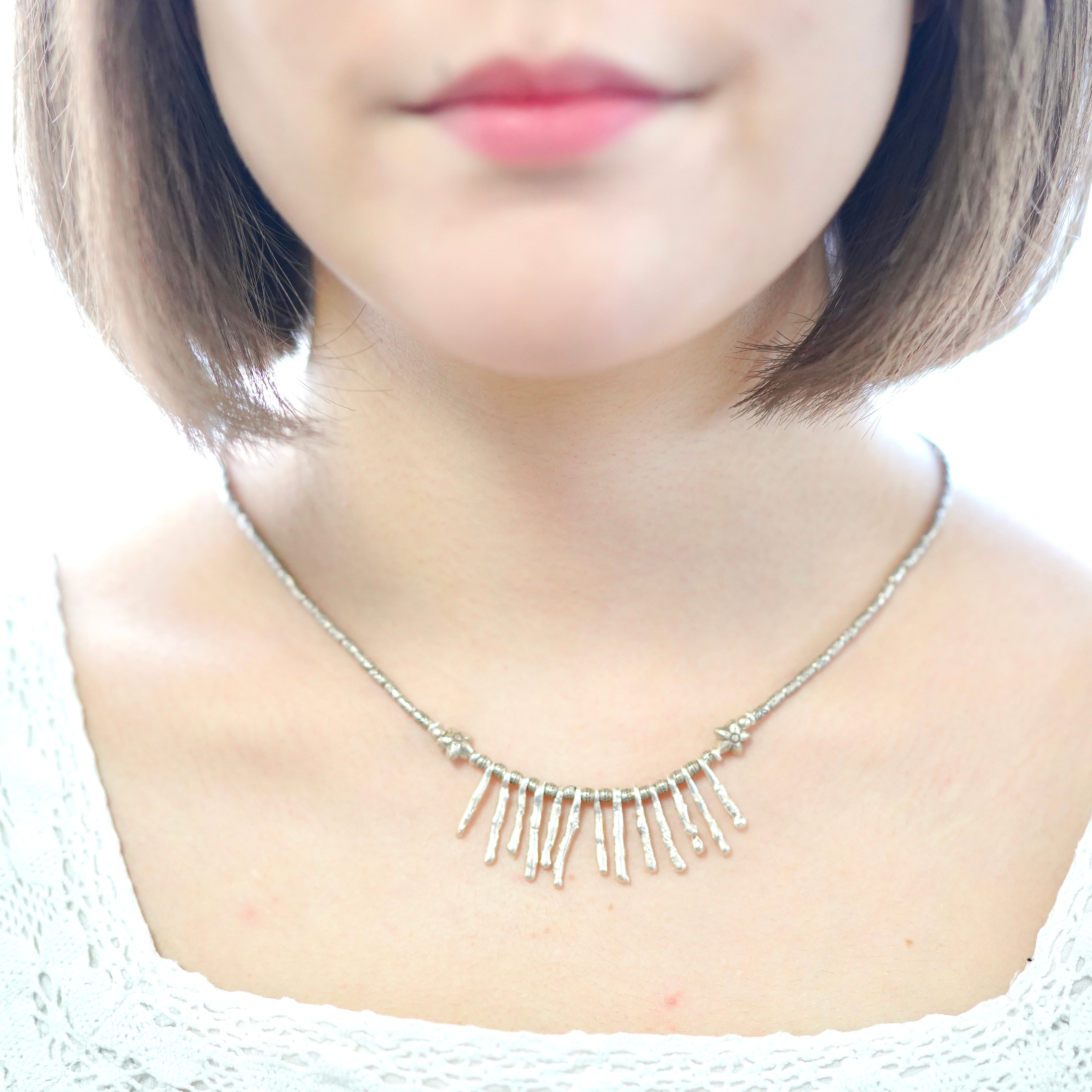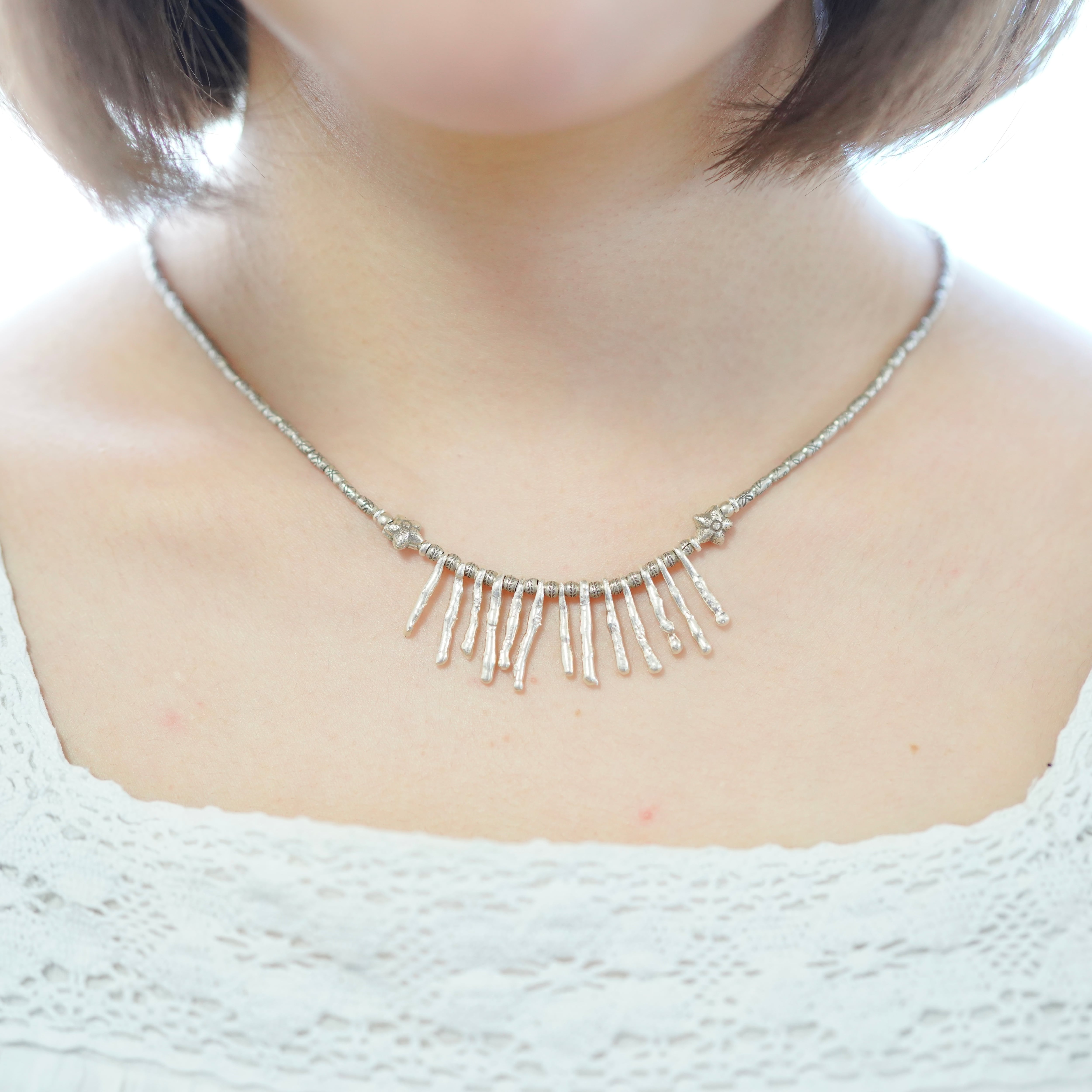 カレン族らしいデザインのネックレスで、性別問わずにつけていただけます。チェーンのひとつひとつにも細かいデザインが施された細部までこだわりを感じるアイテムです。