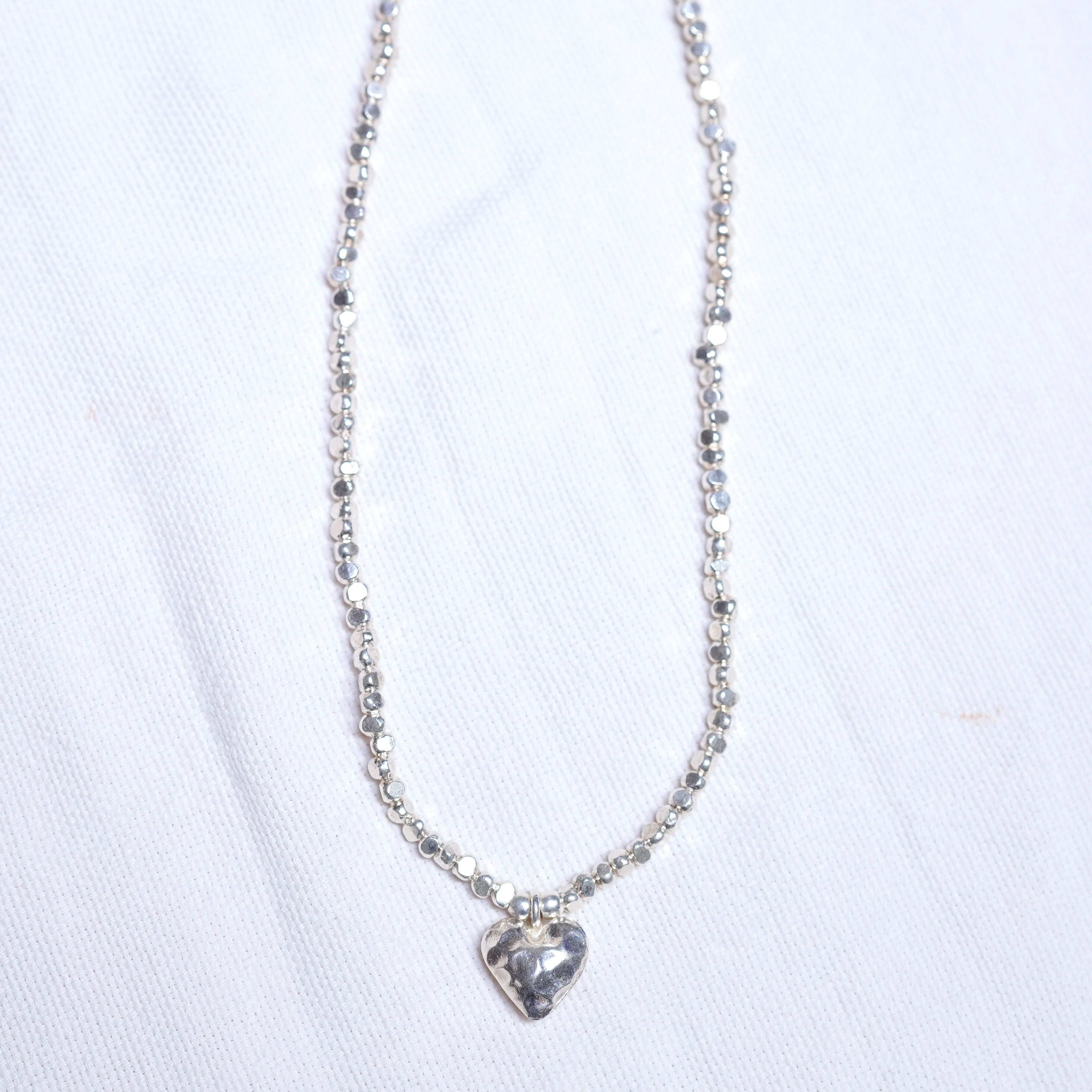 小さなハートのチャームがついたネックレス。軽いつけ心地で普段使いしやすく、ずっと付けていられるアイテム。角度によって見え方の変わるチェーンで、重ね付けにもおすすめです。