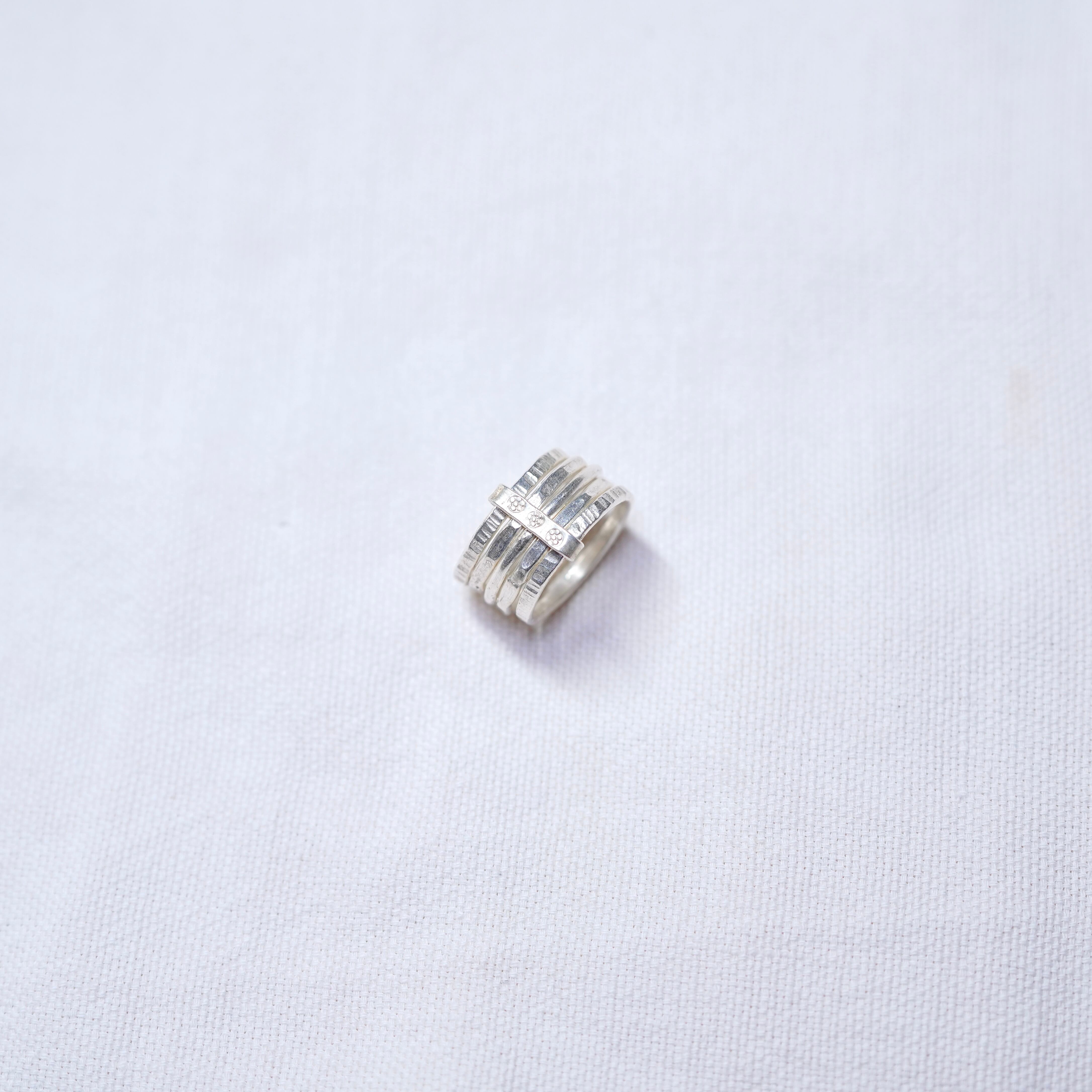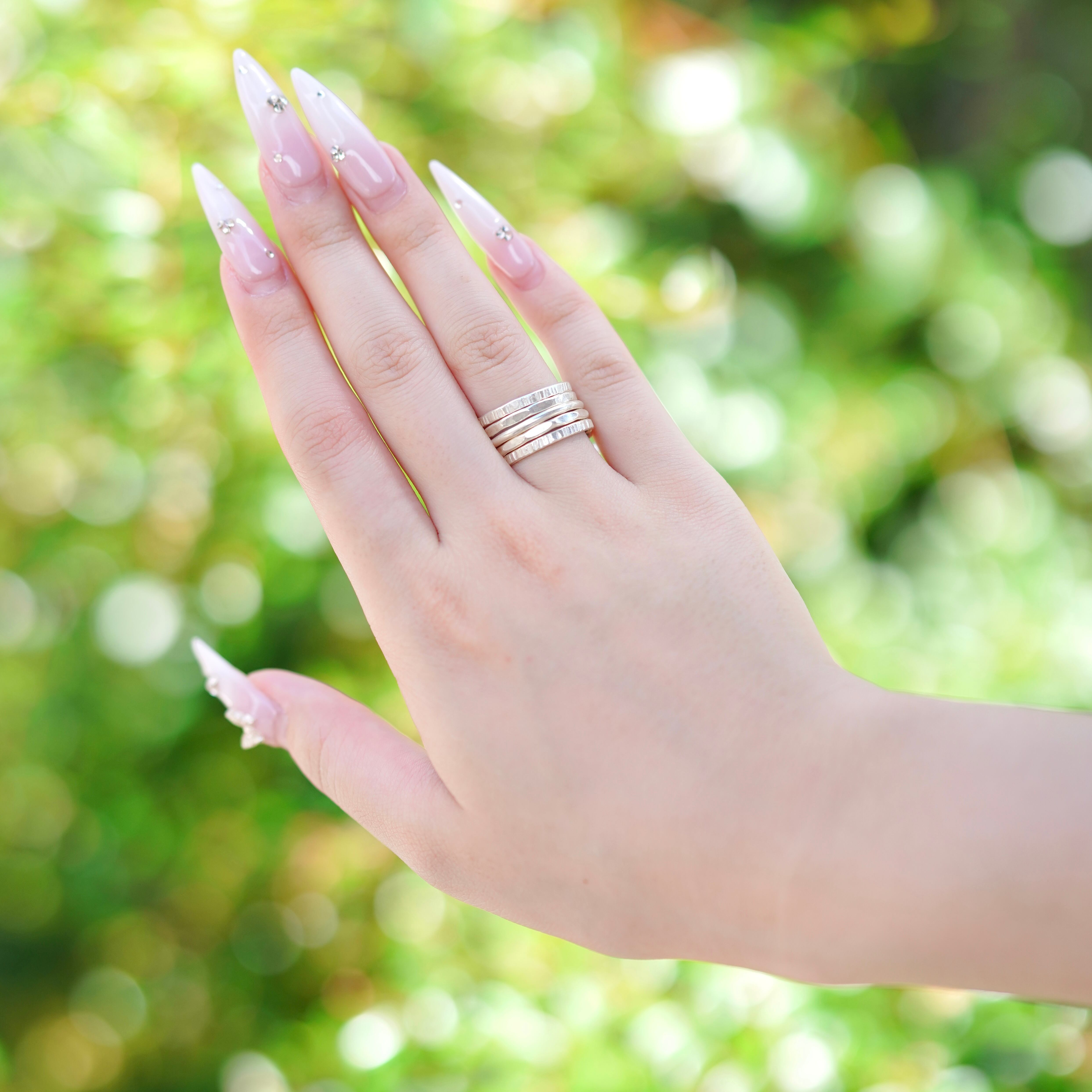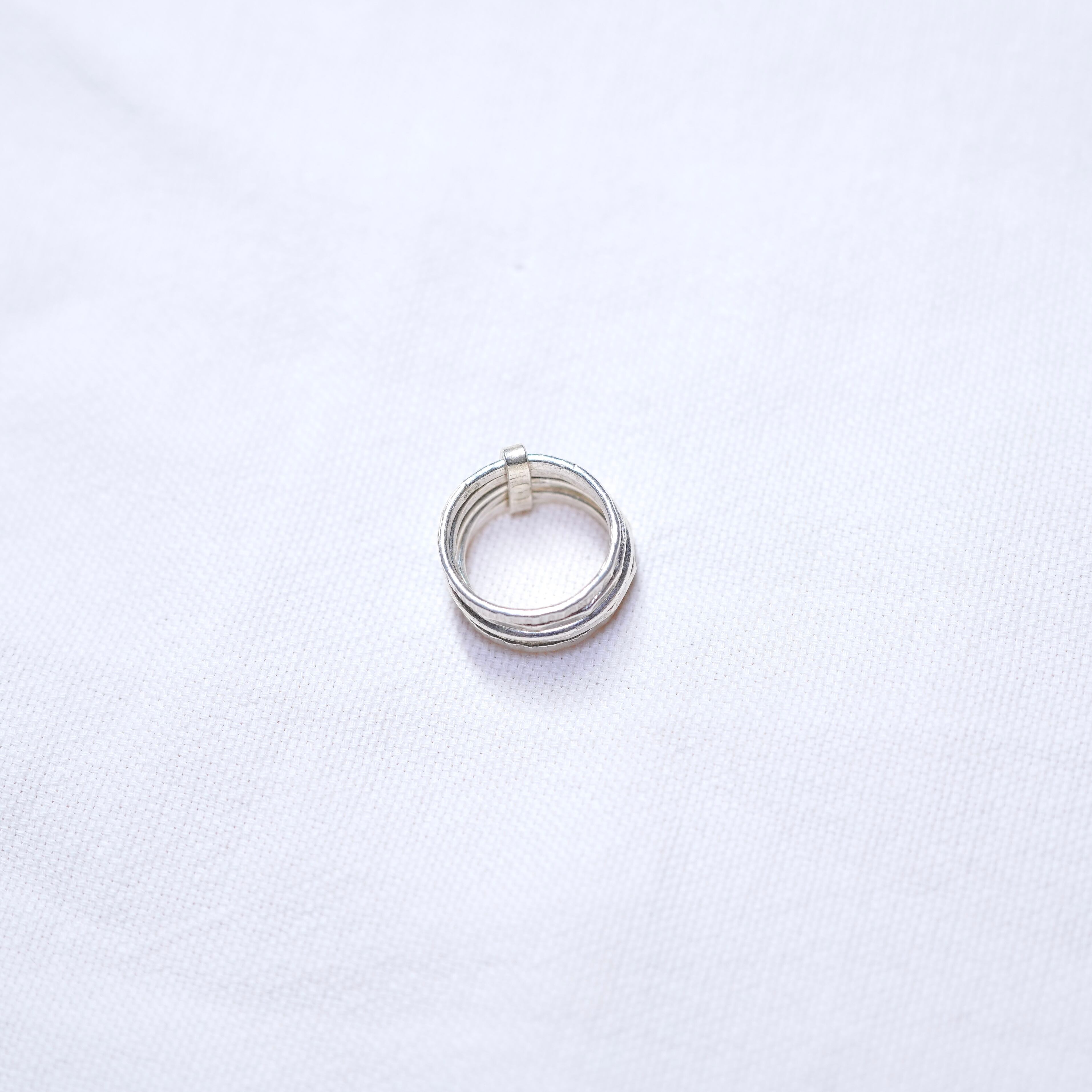 細いリングを5つ組み合わせた立体感のあるリング。重ね付けしたようなボリューム感を出せますが、程よいボリューム感で引っかかりがなく、毎日付けられるアイテムです。
