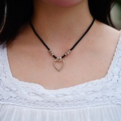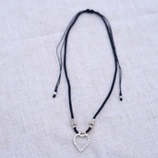 Black string open heart necklace