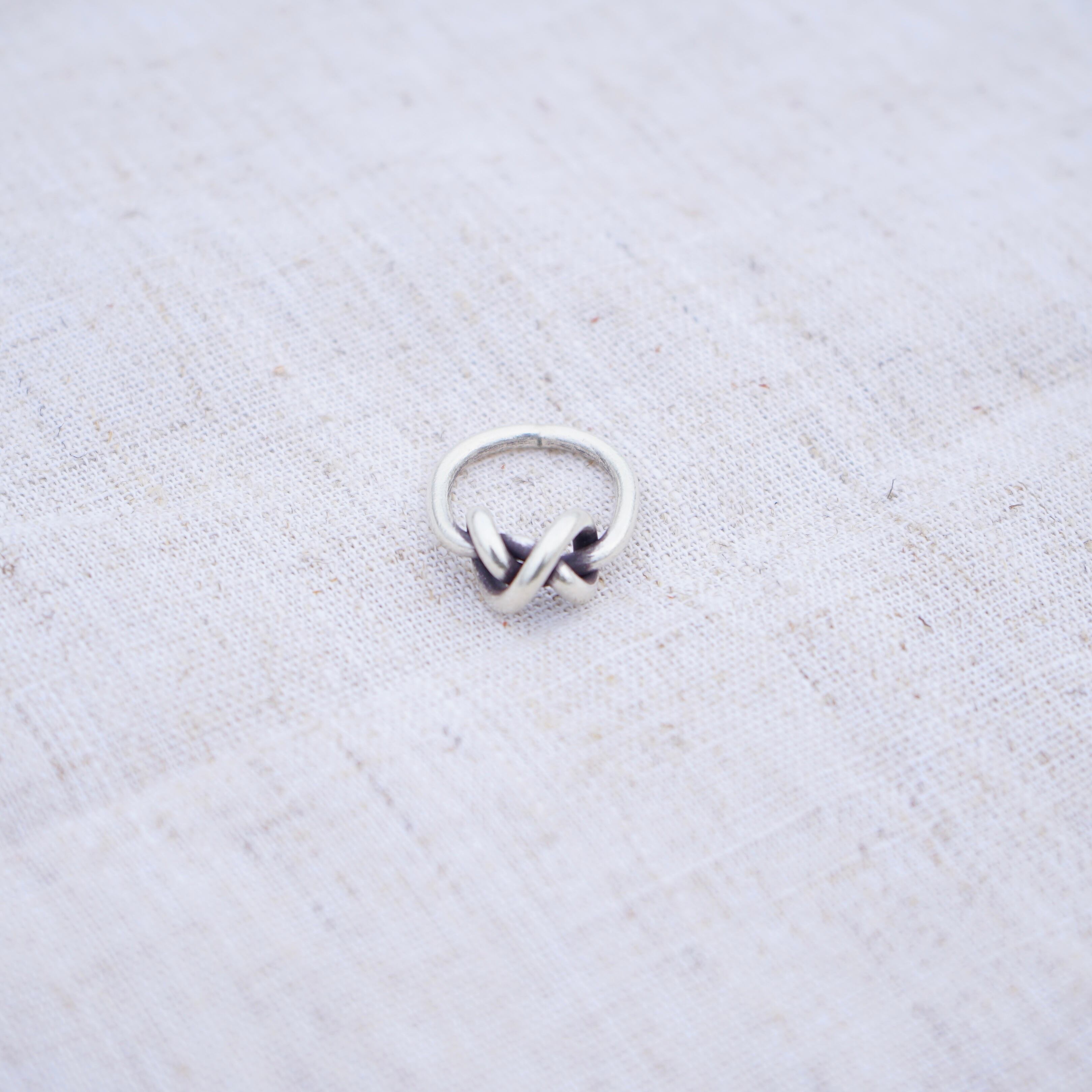 シルバーのワイヤーを編み込んだような形のリングです。性別問わず付けていただけるシンプルなデザインです。