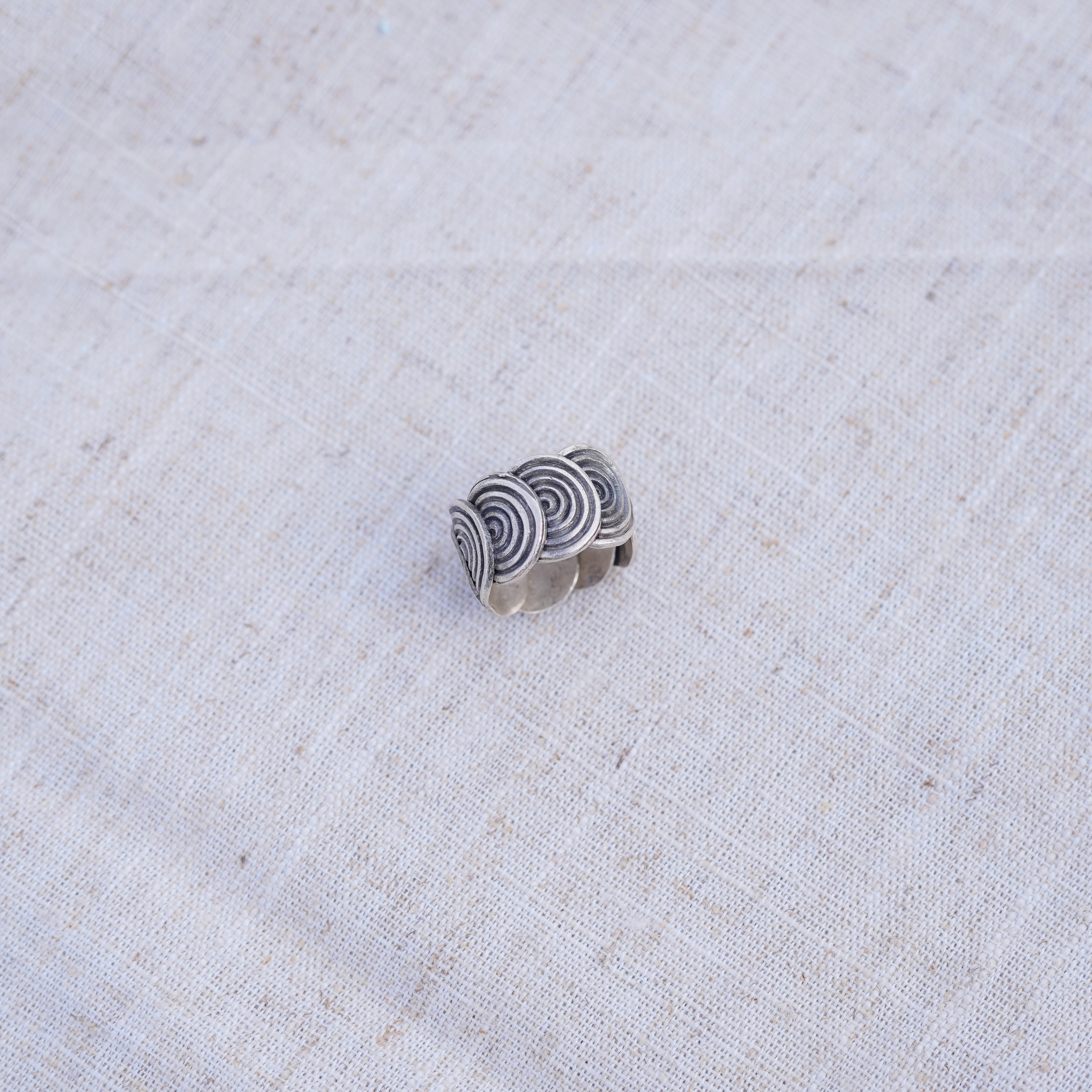 シルバーのワイヤーを丸く編み込んだ形のリングです。 カジュアルファッションを始め、様々なコーディネートに合うアイテムです。純度の高いシルバーを使用しておりやわらかい為、調整の際はお気を付け下さい。